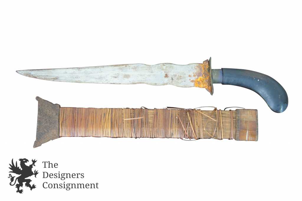 2 Indonesian Knives Machete Kalamata Carved Sheaths Dagger Kalis Kris Java Sabre