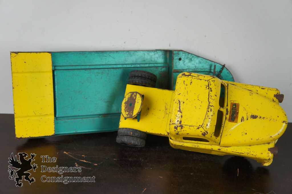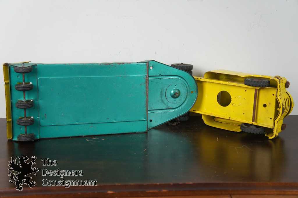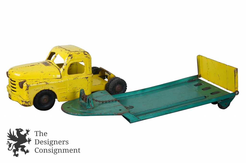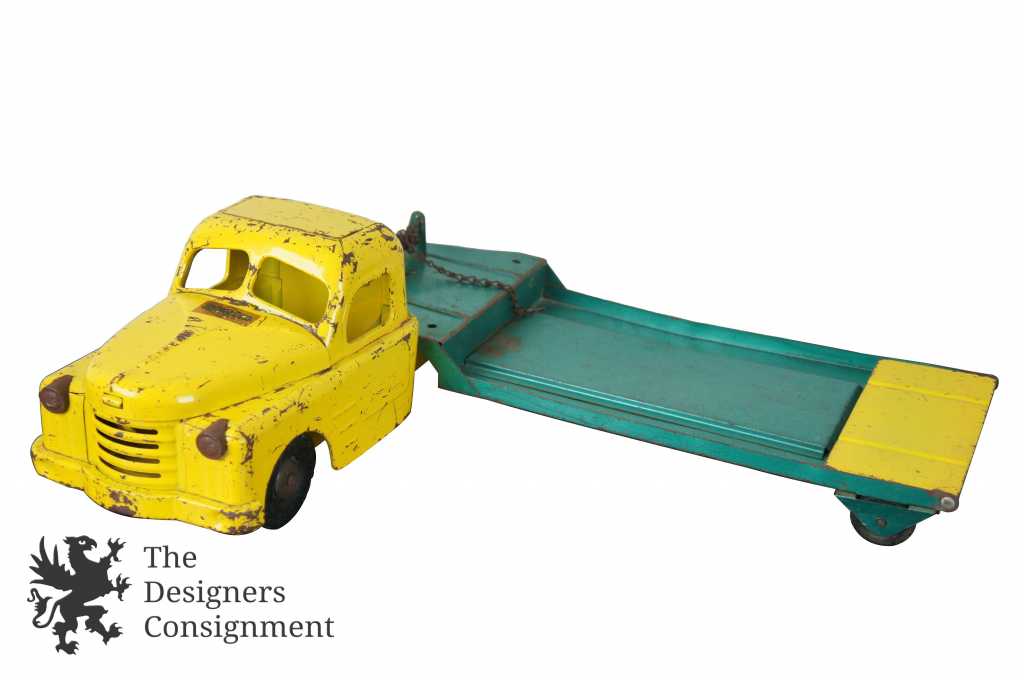 Structo Semi & Lowboy Hauler. Includes original crank winch. Made from pressed steel. Circa 1950s