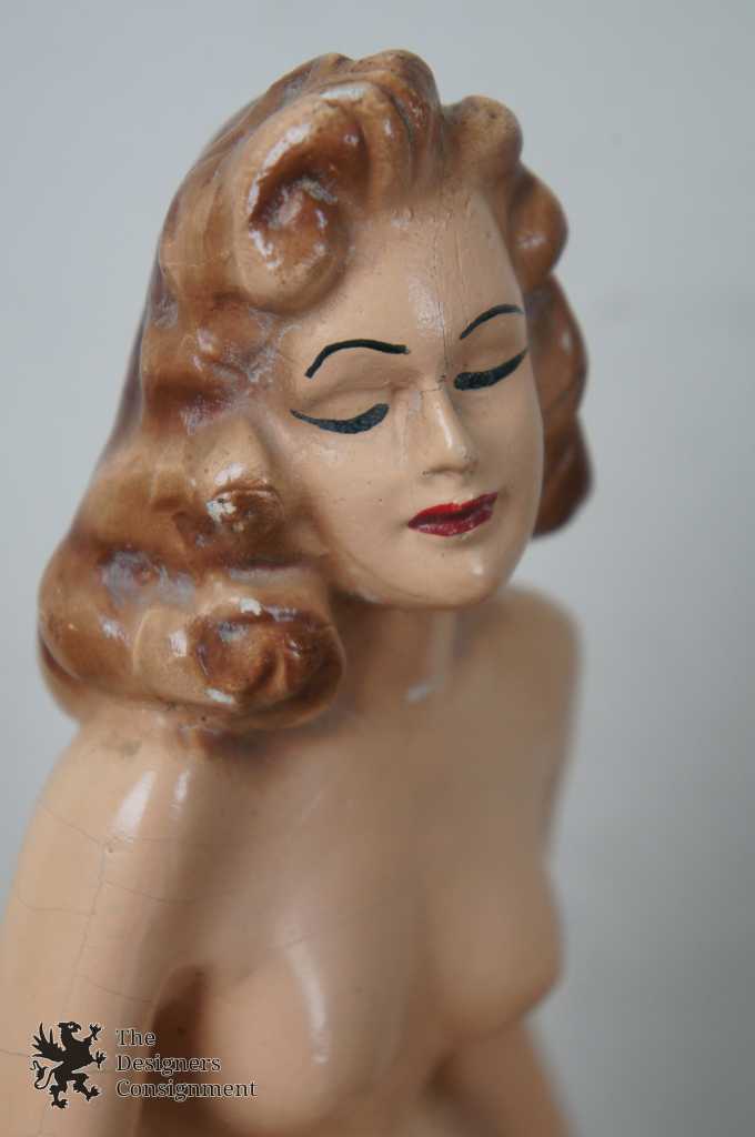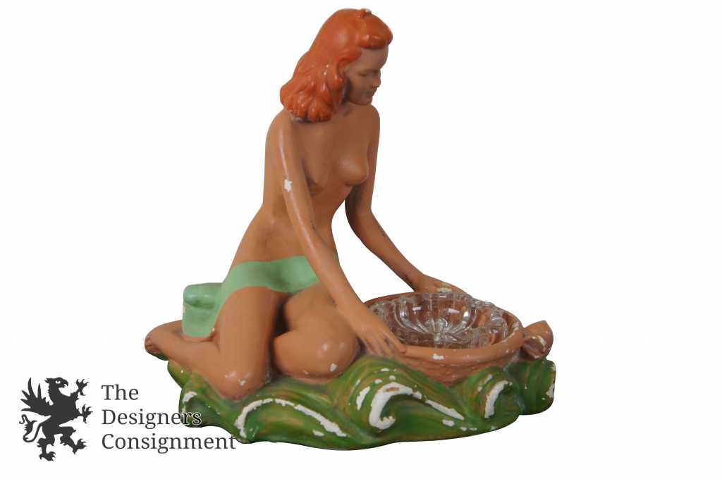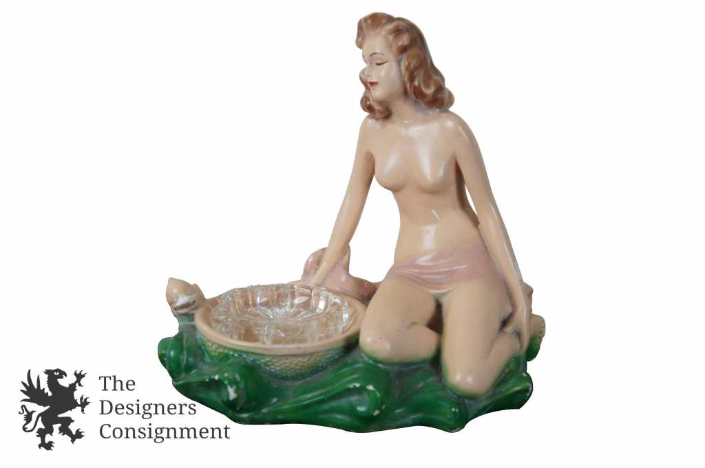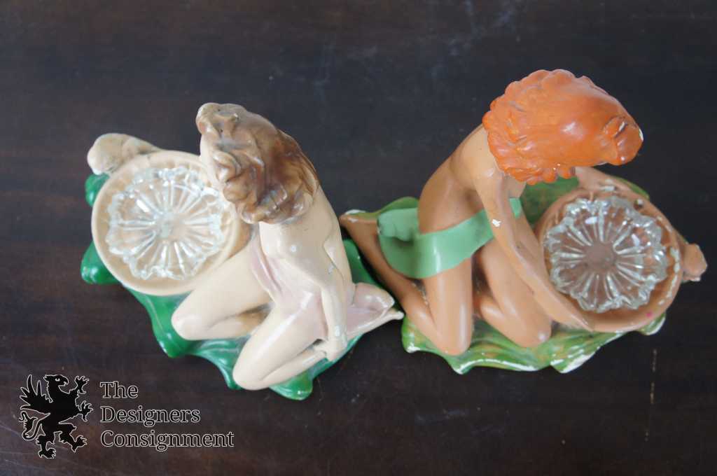 2 Vintage Nude Chalkware Ashtrays