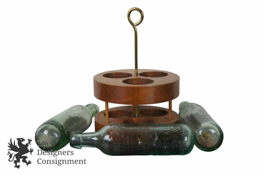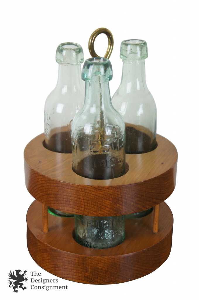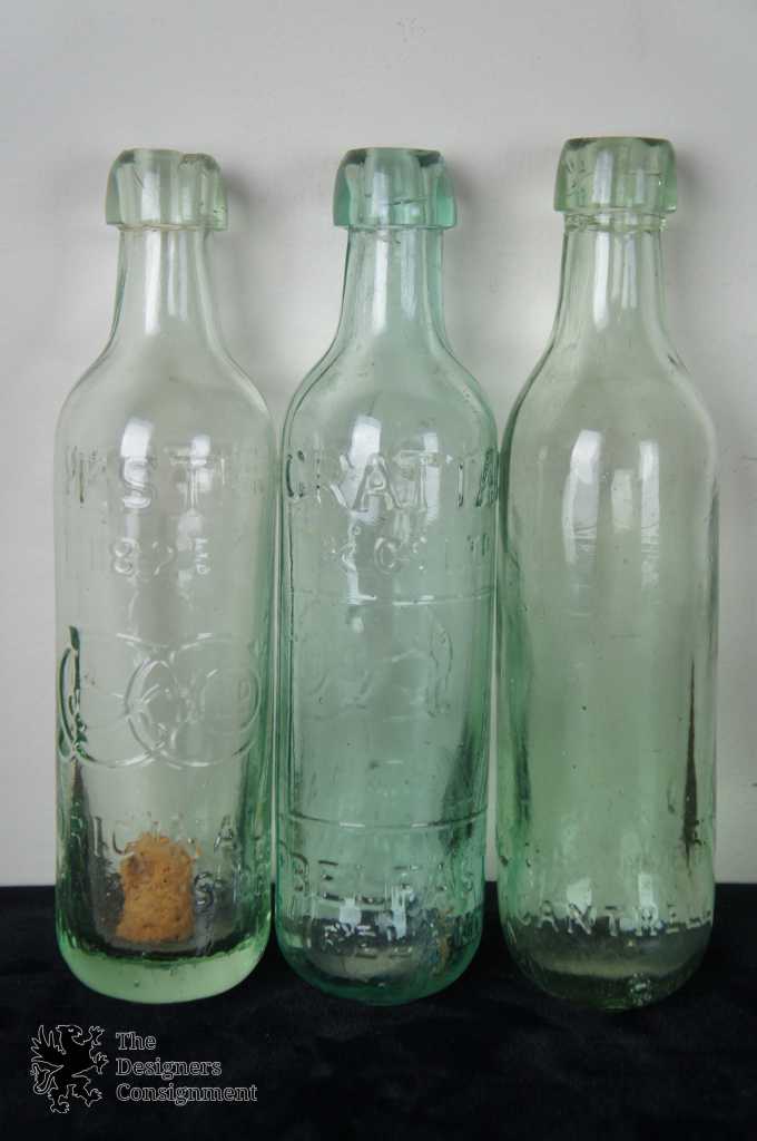 3 Antique 19th Century Ginger Ale Bottles With Stand