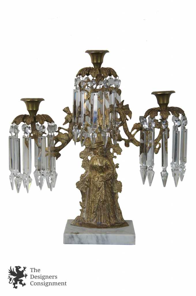 Marble bases with large beautiful drop prisms/crystals and floral/leaf motif.