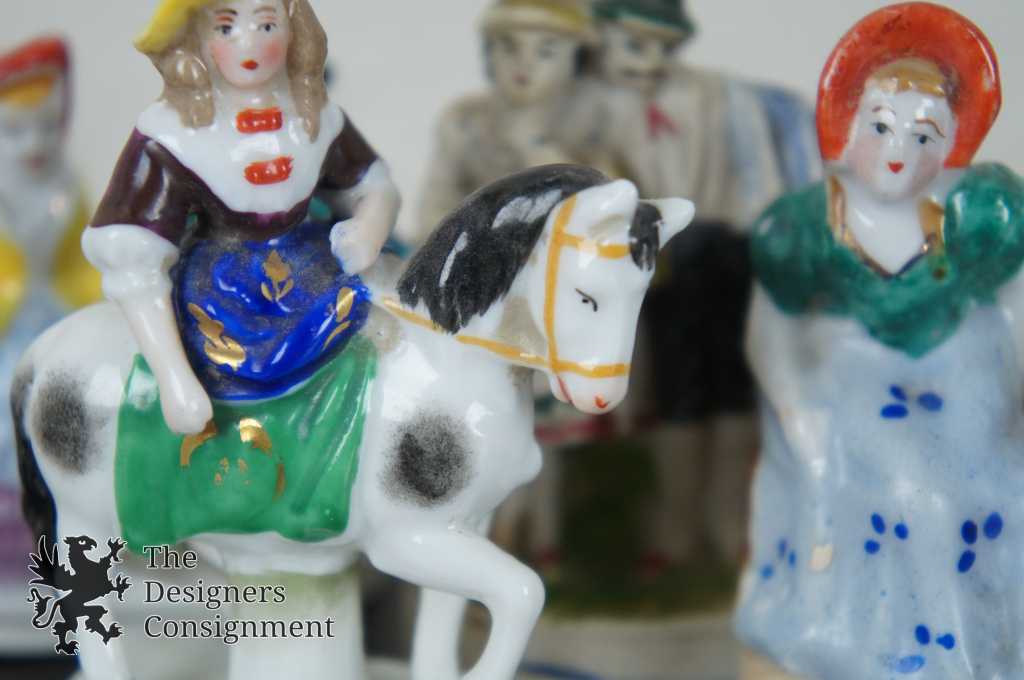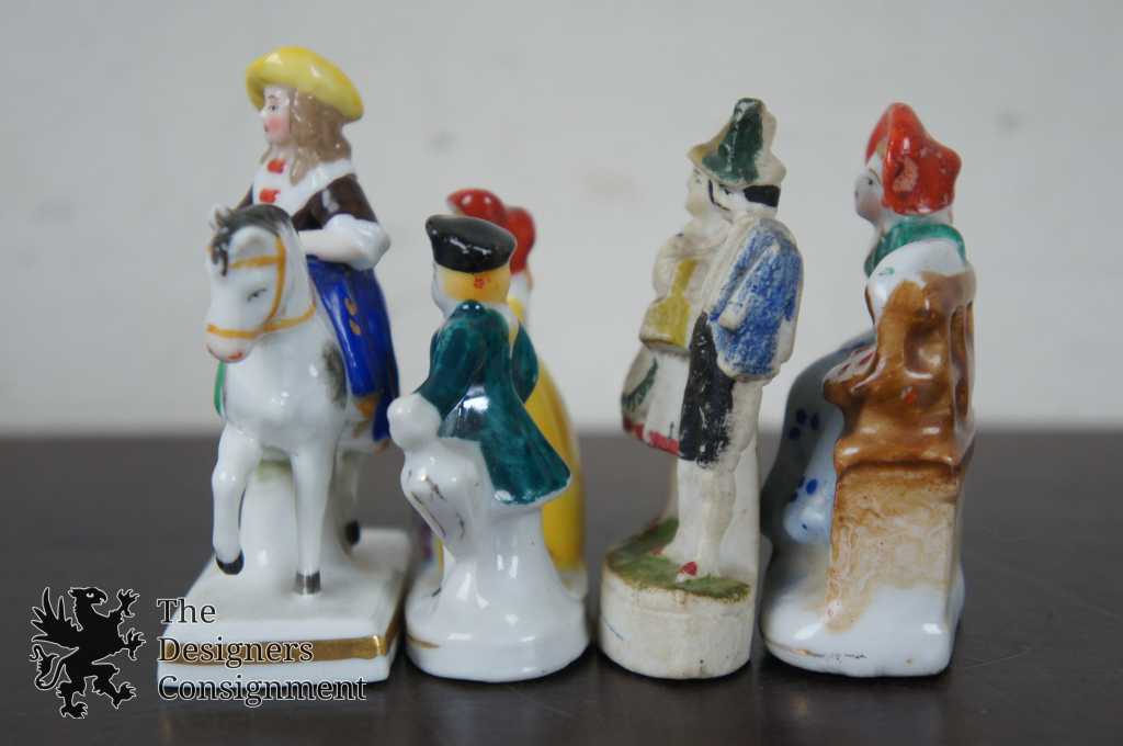 A fun lot of miniature porcelain and bisque figures. 3 are porcelain colonial style occupied Japan, and the other is bisque possibly German. A neat addition to any collection.