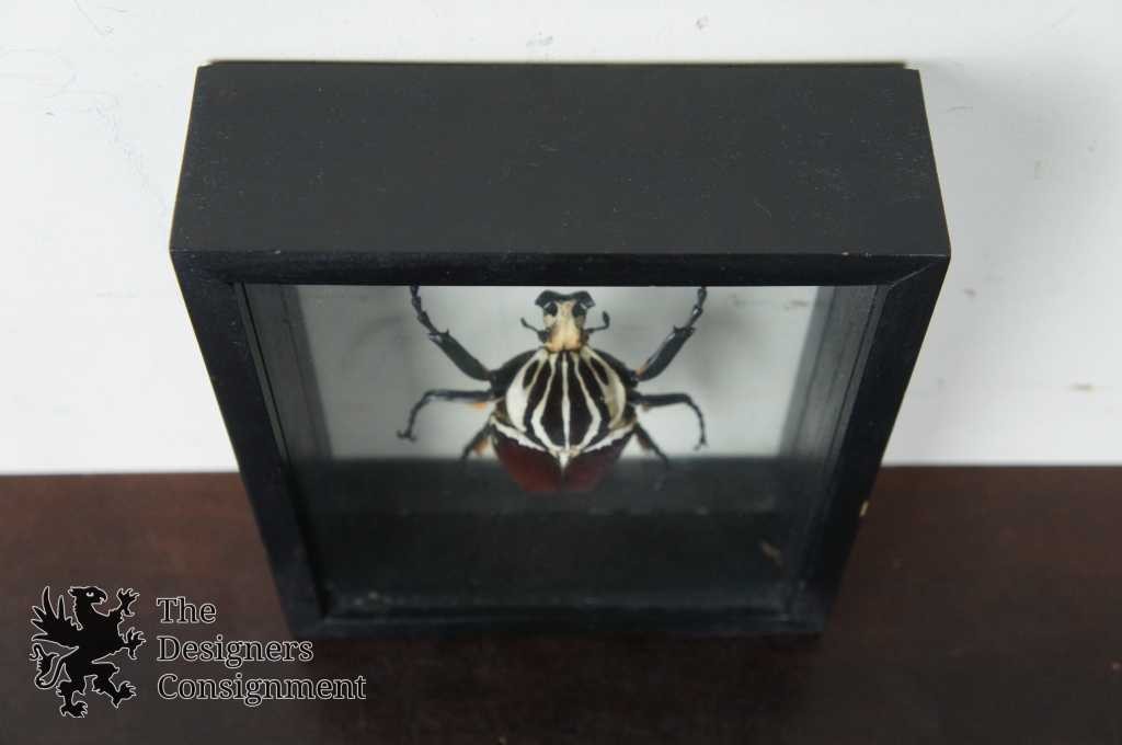 Circa 1990s Vintage Goliath Goliathus Taxidermy In Black Shadow Box Frame