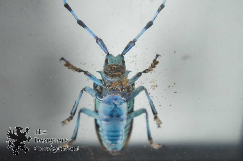 Cerambycidae Taxidermy Shadowbox Blue & Black Longhorn Beetle Indonesia Insect