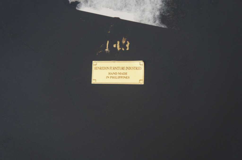 A gorgeous French inspired centre table by Henredon. Made from cast iron with a gold finish and faux marble top. A meticulously detailed table with figural mounts portraying the solar deity, or god of the sun. A beautiful addition to any space.