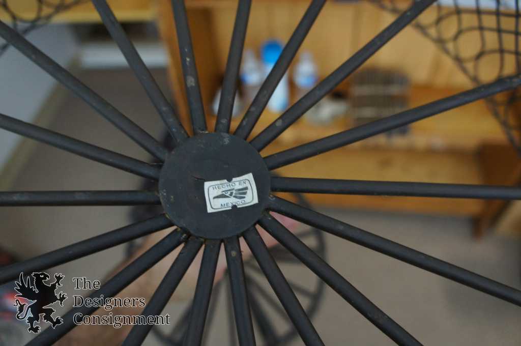 Features ornate iron and wire footed design.