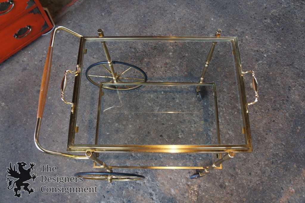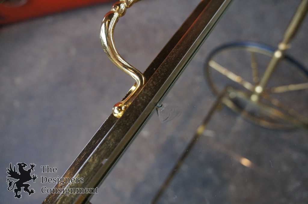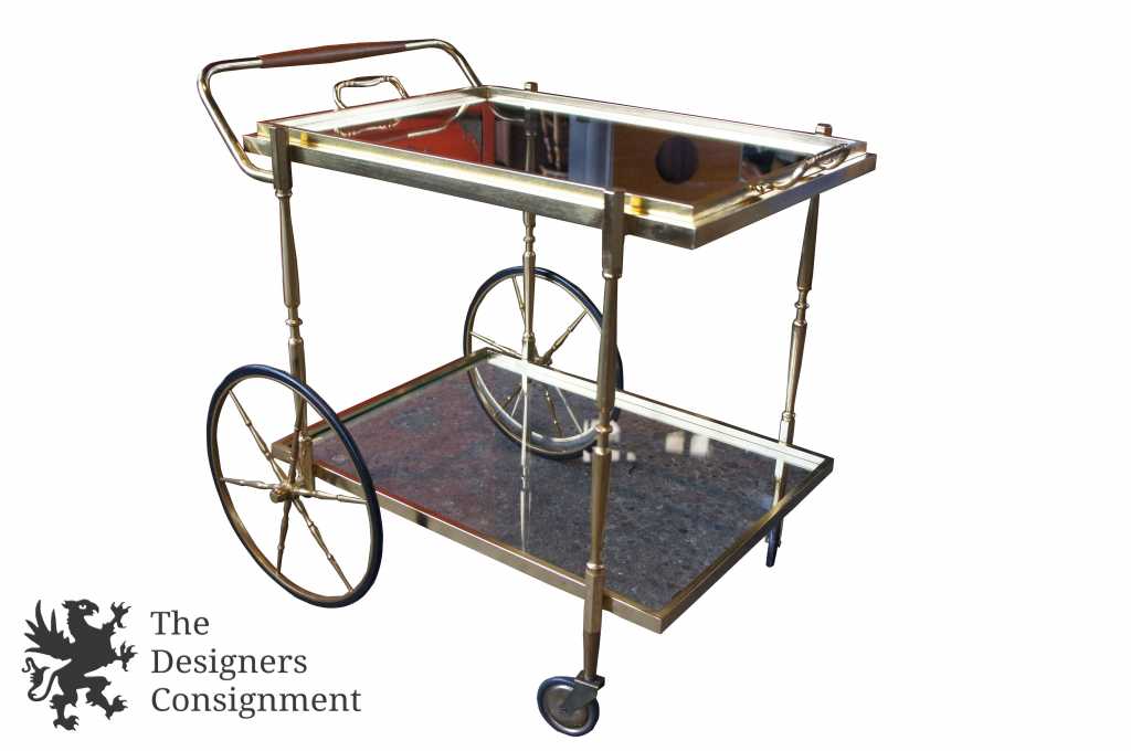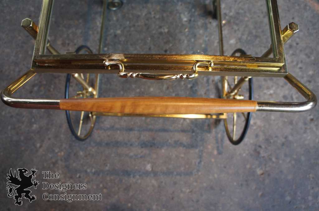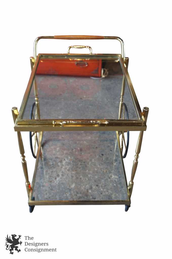 Beautifully designed Hollywood Regency cart with removable serving tray and wooden handle. Great for display and use.