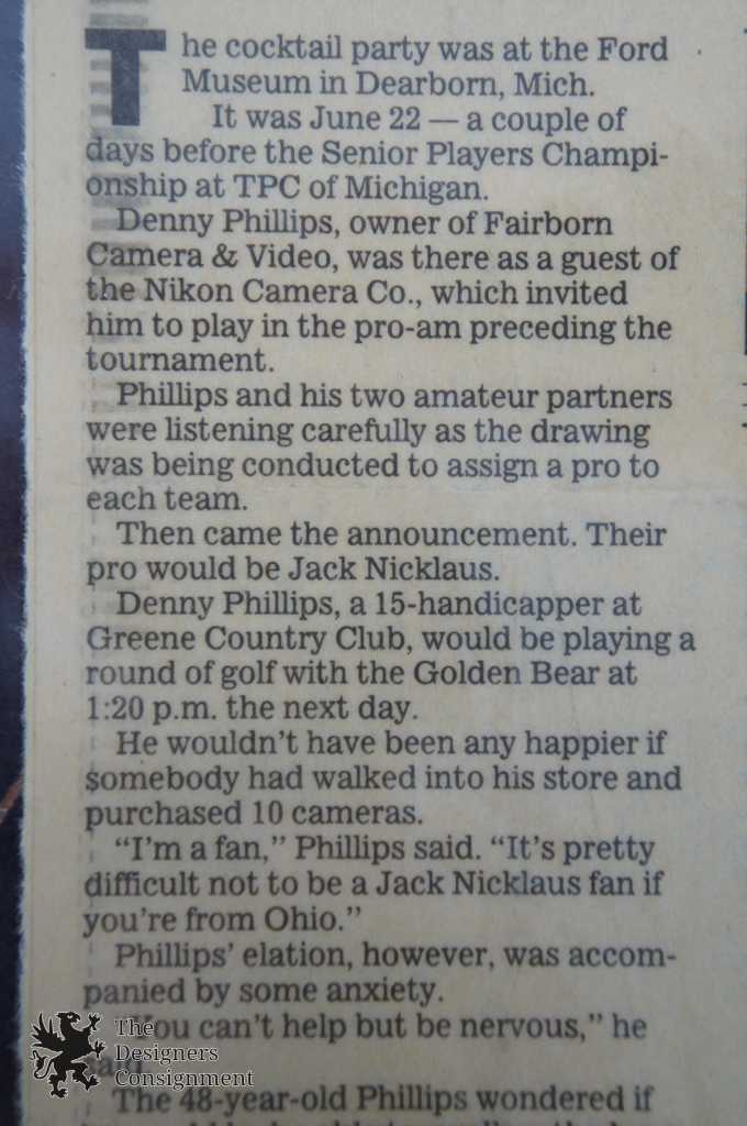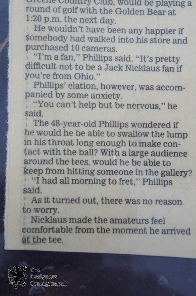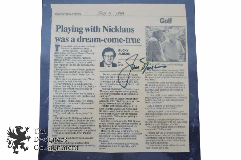 Jack Nicklaus hand signed news article from the Dayton Daily News 1993, MCH1