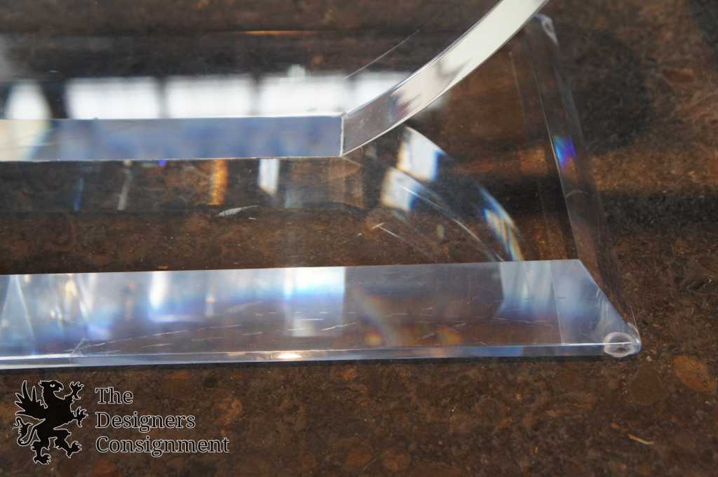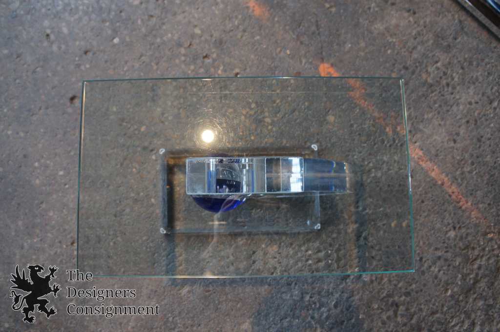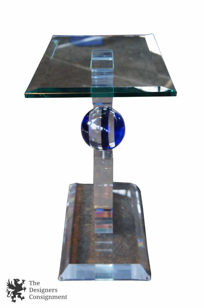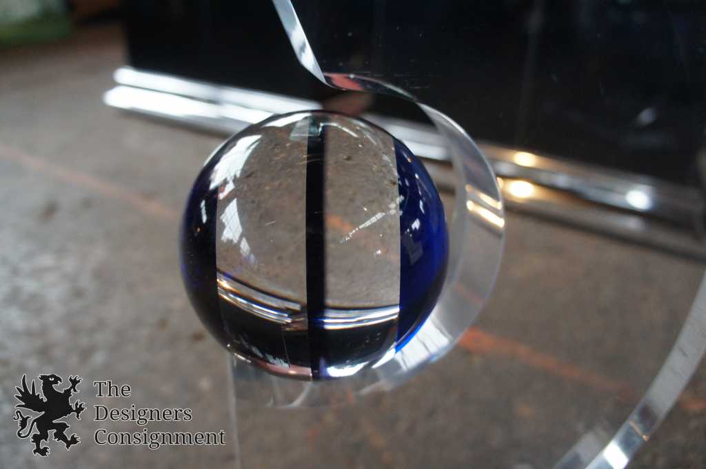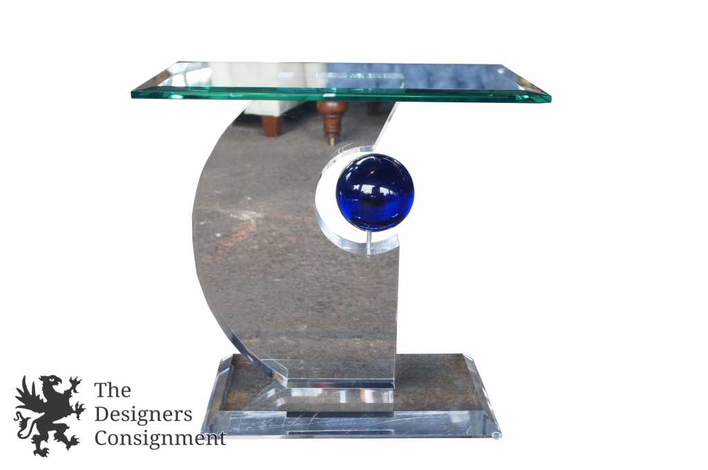 Abstract Modernist Acrylic Lucite Glass Top Side End Accent Table Blue Sphere