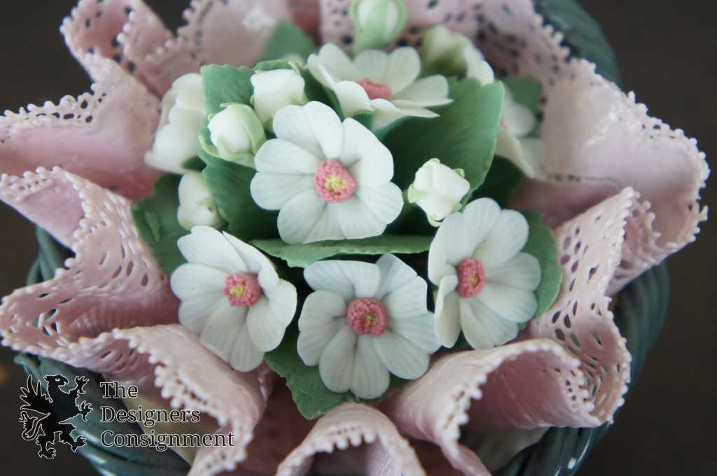 Lladro Spain Daisa Porcelain Capricho Flower Basket Pink Lace White Floral #1554