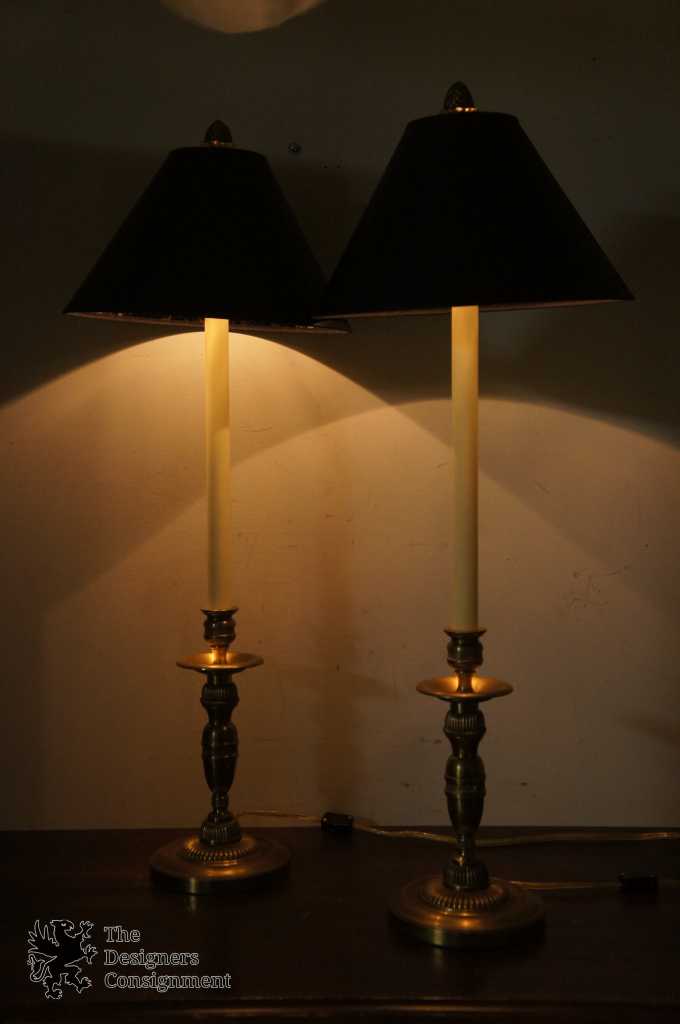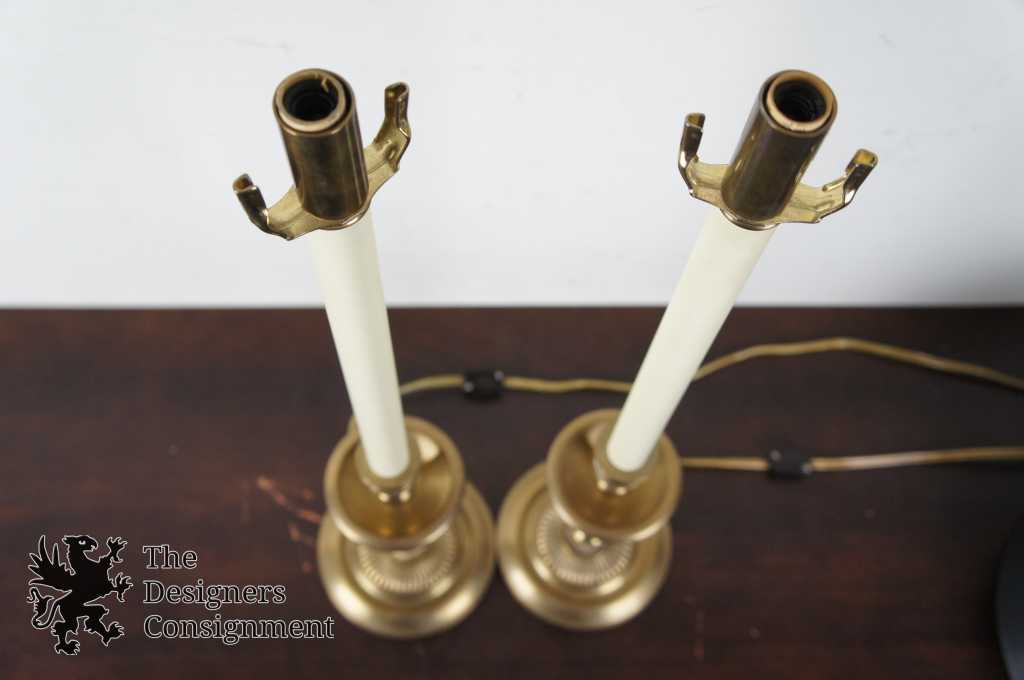 2 Vintage 1997 Chapman Brass Candlestick Table Lamps Pineapple Finials Org Shade