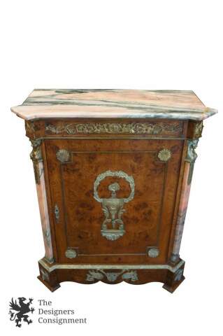 Antique Louis XV French Olive Ashwood Burled Console Table Knockdown Pink Marble