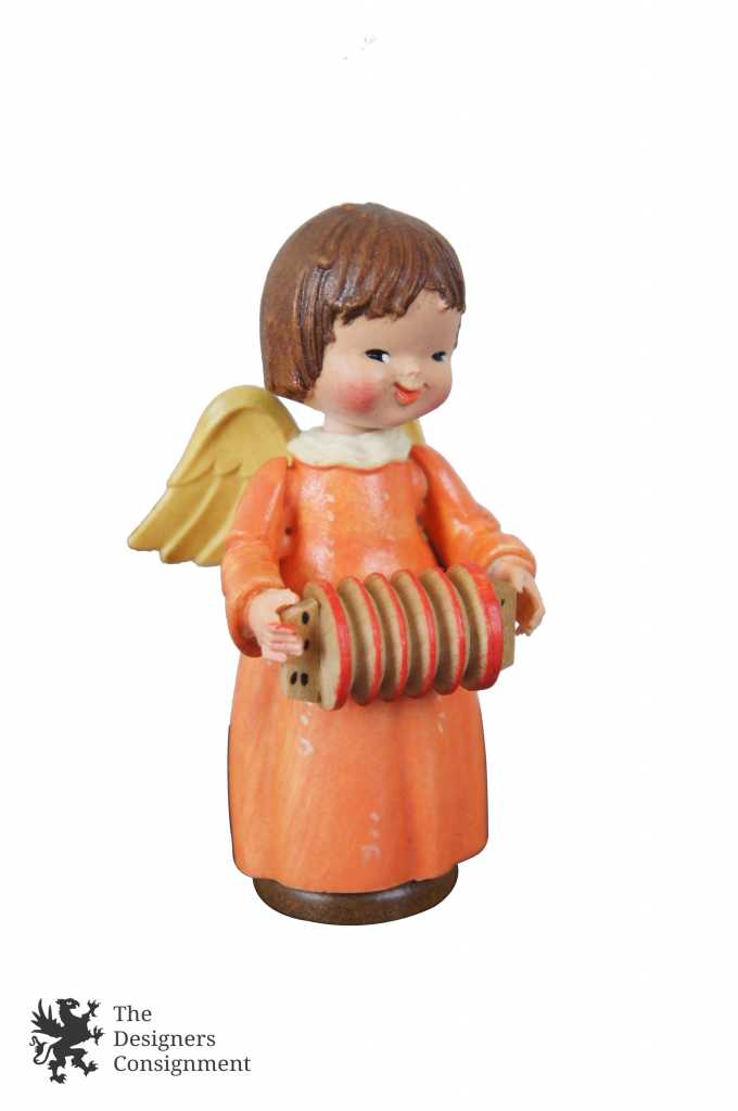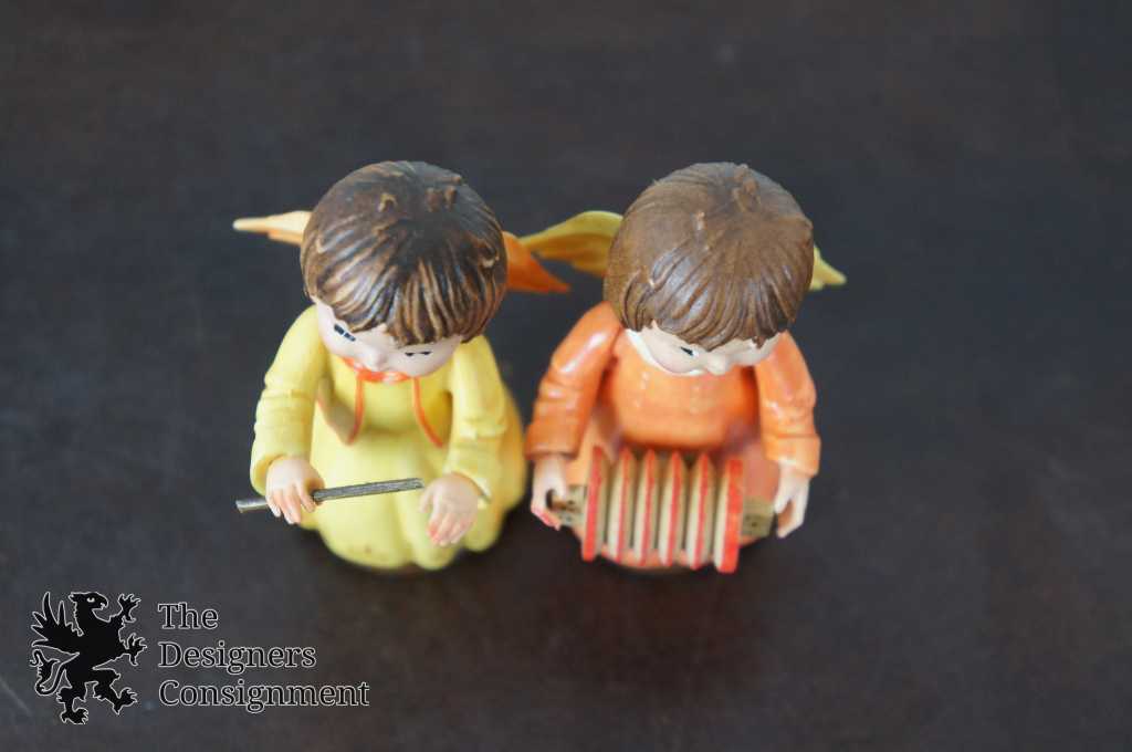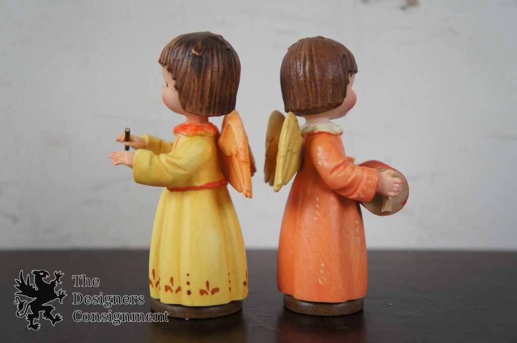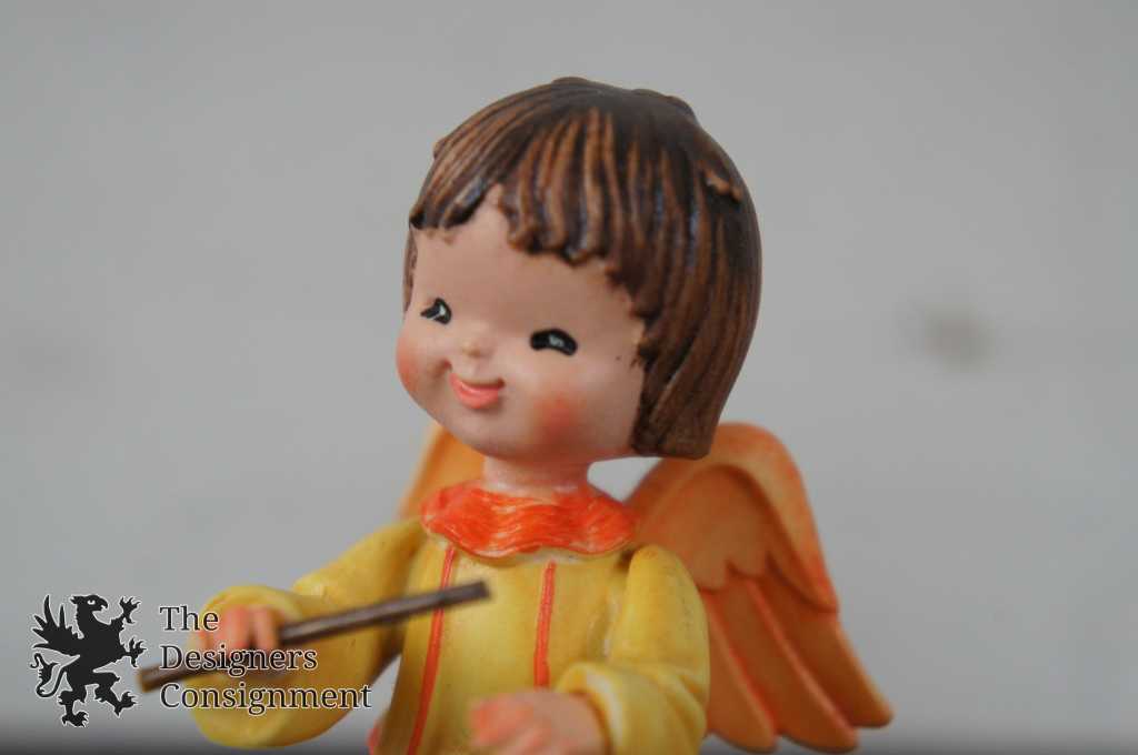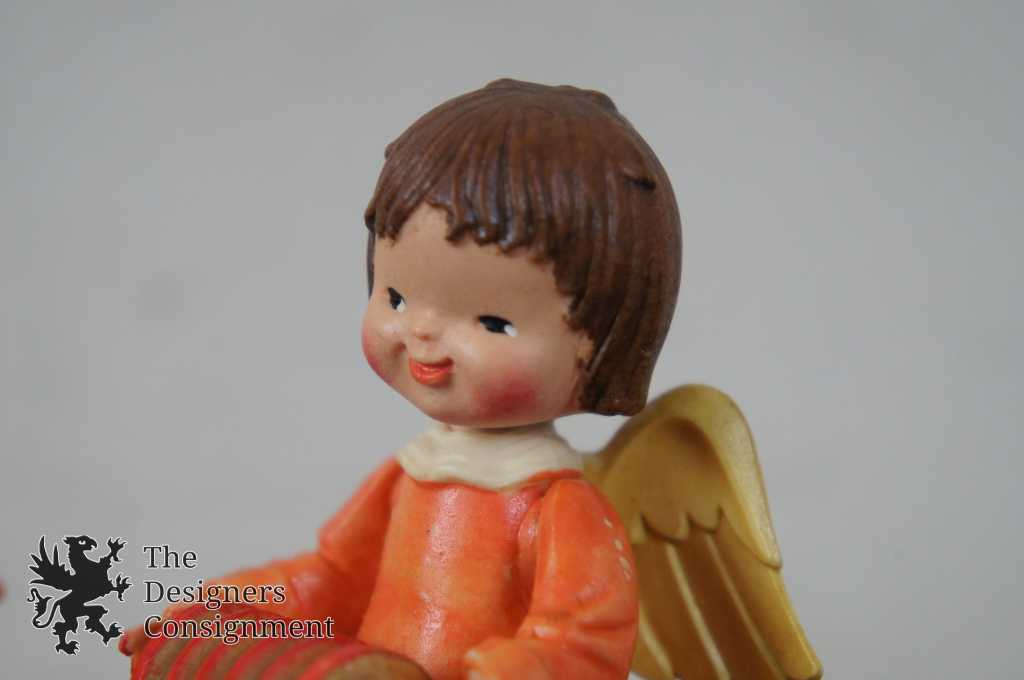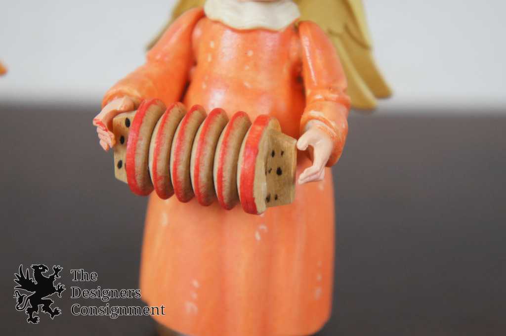 2 Vintage Anri Figurines Musical Angels Accordion Conductor Nativity Ferrandiz