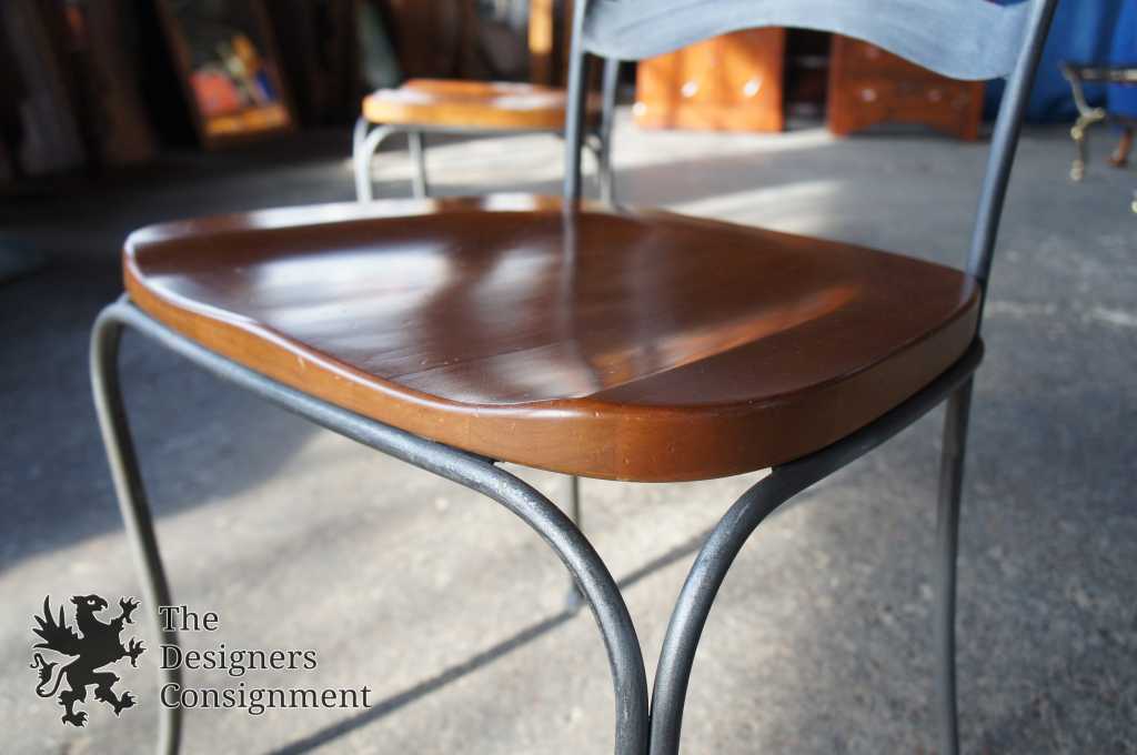 A beautiful ladderback chair made from wrought iron with a pewter finish and maple seat.