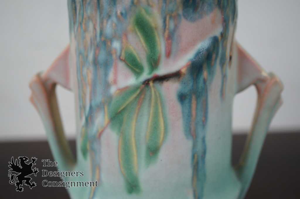 Vintage Roseville Pottery USA 774-6" Ceramic Vase Blue & Pink Spanish Moss