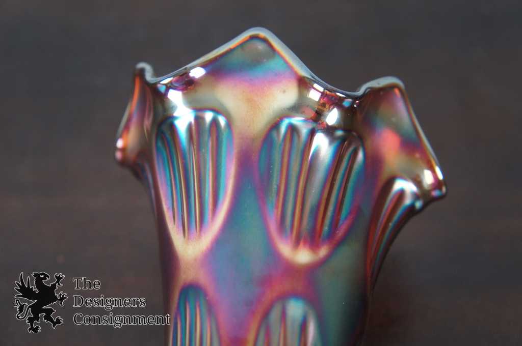 Antique Rust Orange Carnival Swung Art Glass Flower Vase Iridescent 10"