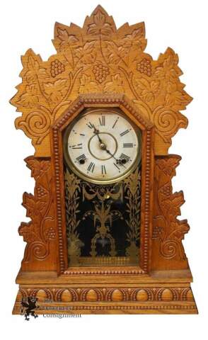 Here is a great Antique 1890-1920 mantel/ wall clock made by William L. Gilbert Clock Co. With ornate floral carving, gadrooning, and a gilded glass door it makes for the perfect addition to any home