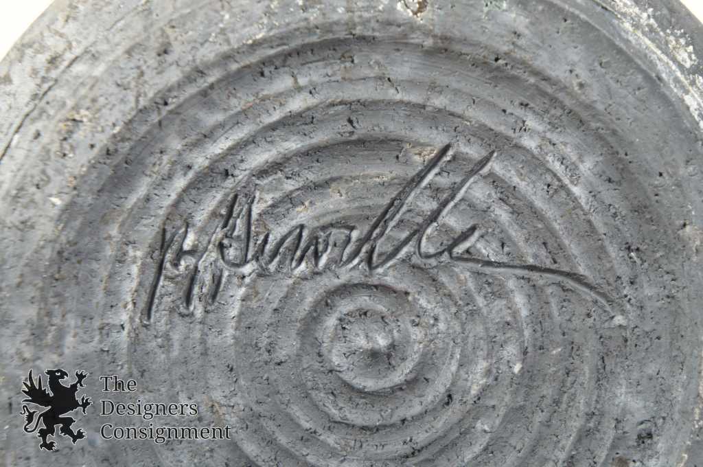 A gorgeous pair of Raku sighned vases. Each vase has a black body with long green leaves and flowers along the top. Amazing color and detail! Perfect for use or display
