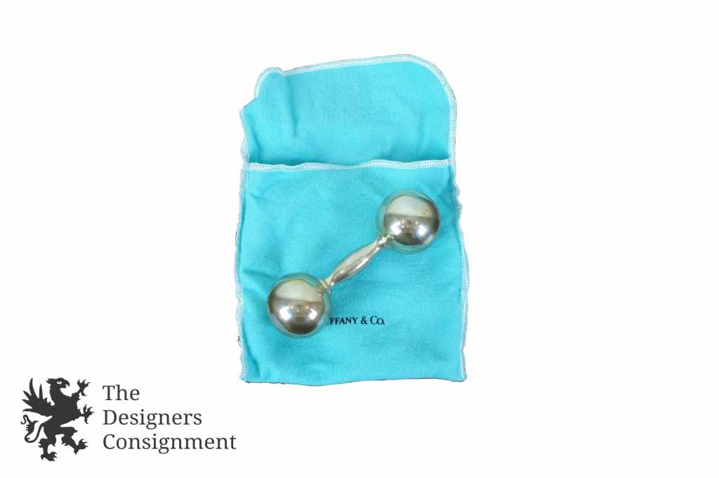 Vintage 1980s Tiffany Baby Rattle. Includes original dust cover and box