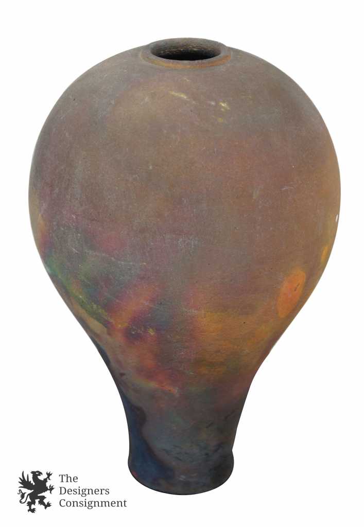Bulbous shaped Raku Vase. Beautiful detail and color. Signed along the base.