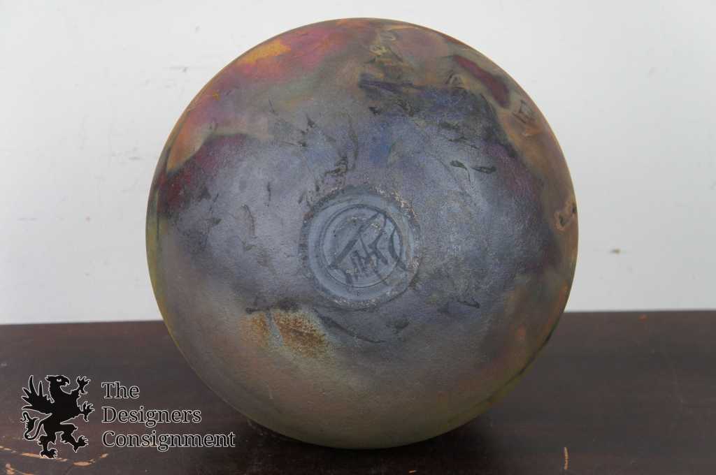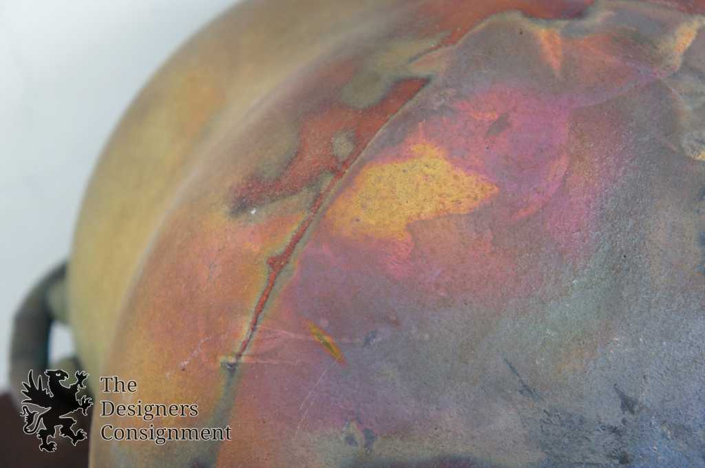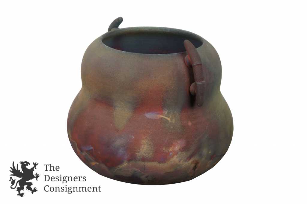 Raku Handled Vase. Beautiful detail and color. Signed along the base.