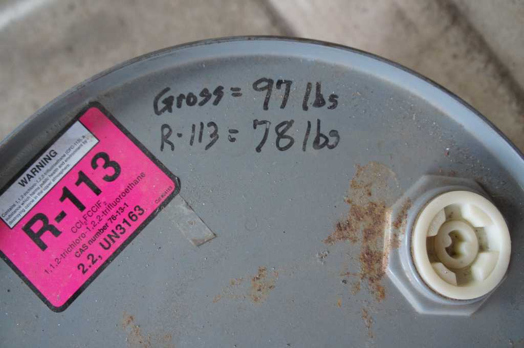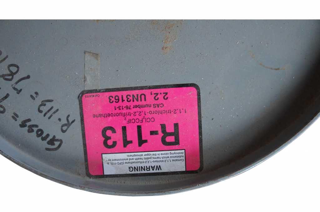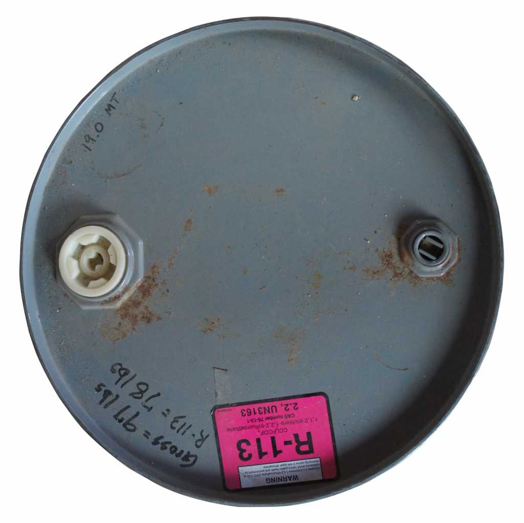 R-113 is a colorless and odorless CFC refrigerant that was completely banned from production by 1996 under the Montreal Protocol for depleting the ozone. R-113 is used as a refrigerant in cooling systems, a foam-blowing agent, and a cleanser for electrical equipment. R-113 is typically stored in violet drums or containers. AKA: CFC-113, Freon™-113, Genetron®-113, Forane®-113.