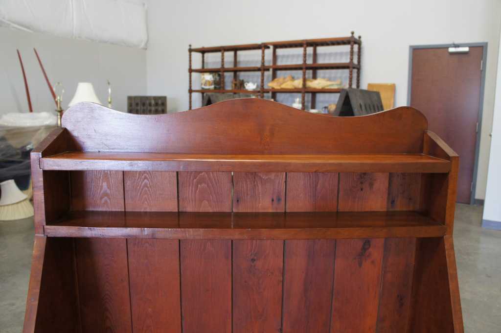 C.1880s Early American step-back cupboard. Made from solid maple with a slant top featuring an upper cubby over lower cabinet.