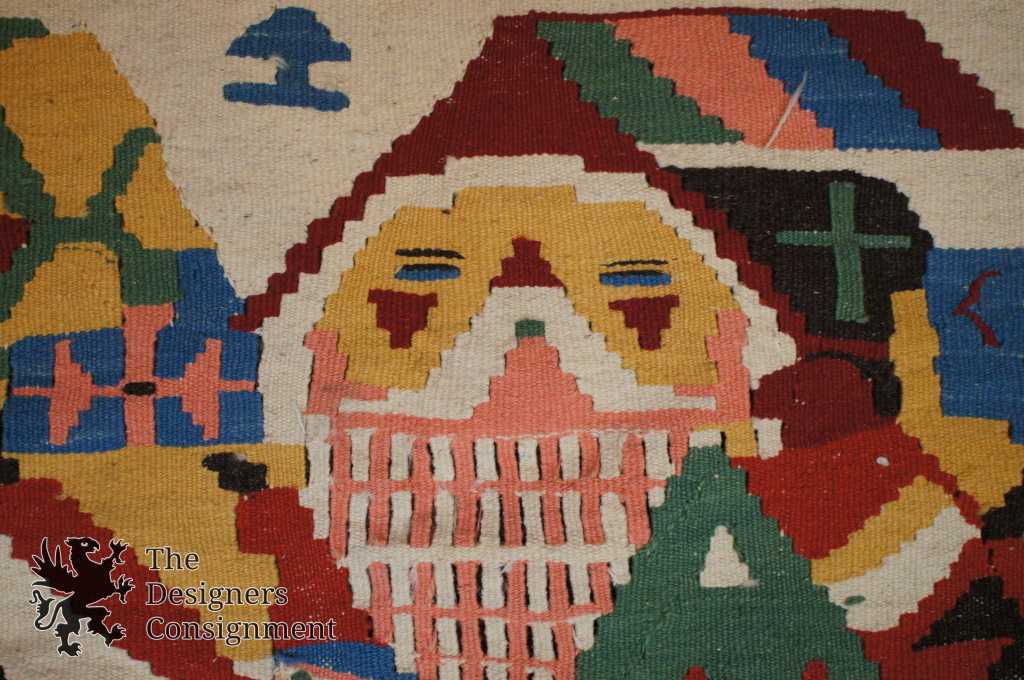 4' x 3' Santa Claus Kilim Rug. Hand Woven with vibrant detail.