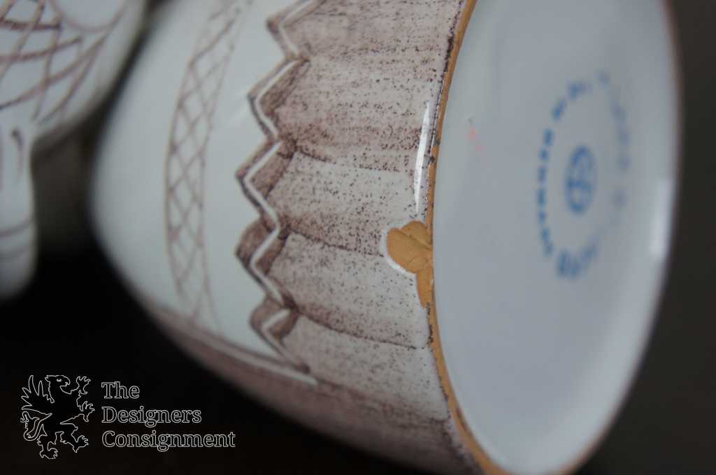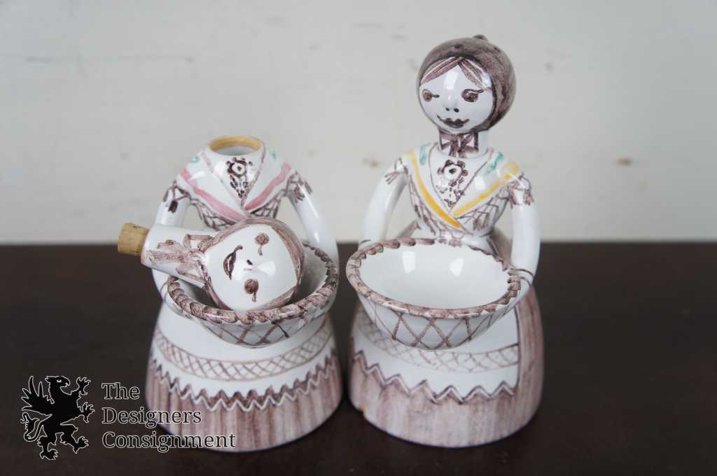 Pair of hand painted, figural porcelain, combination salt & pepper shakers & condiment bottles by Lars Syberg Denmark.