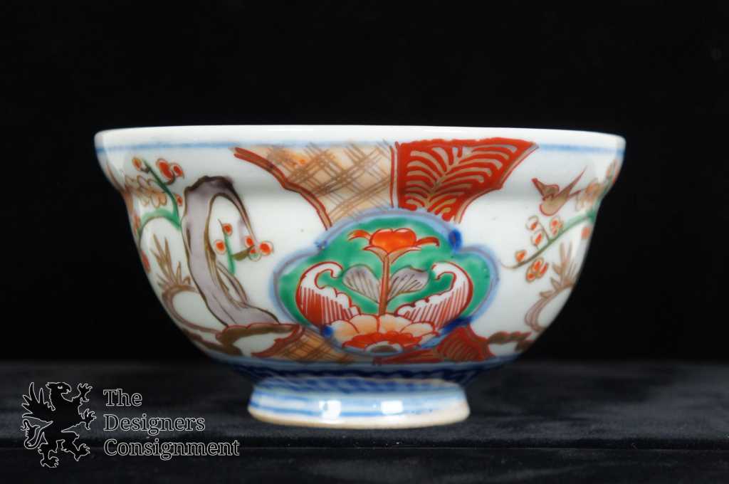 Japanese Imari Matching Bowl & Plate. Blue with floral pattern along the exterior. Interior is blue and red. Plate has a stamp along the underside.