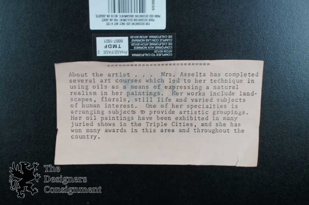 Mrs Asselta is a New York Artist known for flroalss. She has been exhibited in man shows and is well known in the triple cities of New York