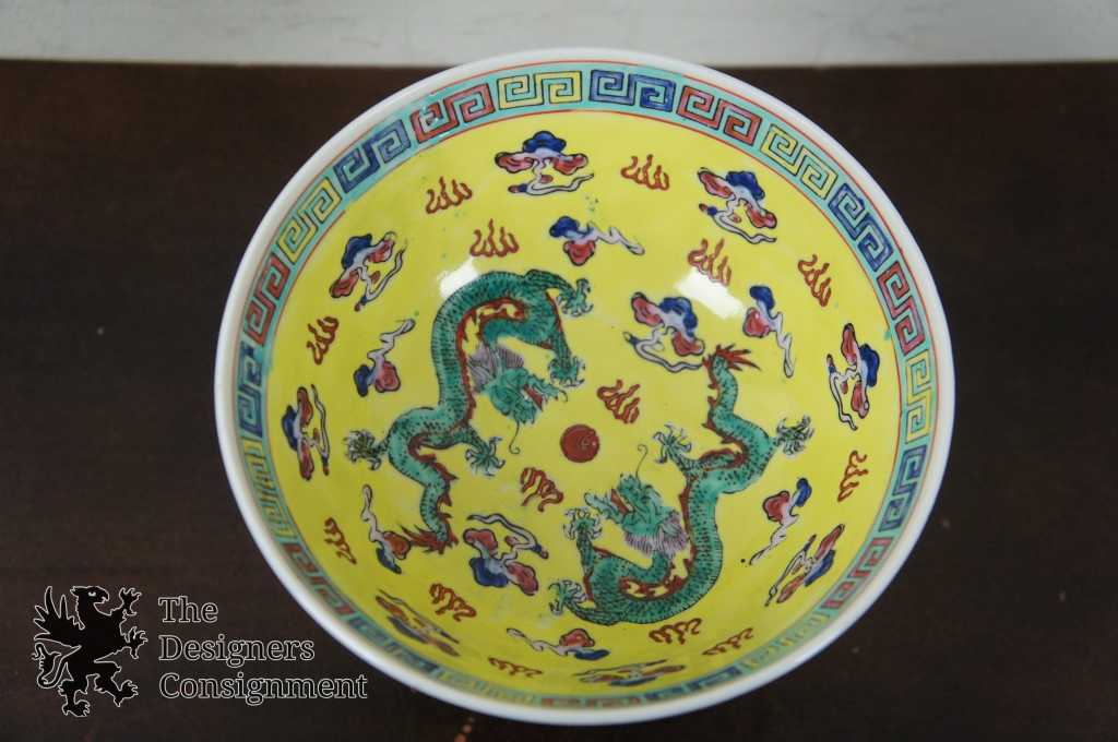 Vintage 6.25'' Famille Rose Enameled Porcelain Dragon Bowl Yellow Pheonix Dish