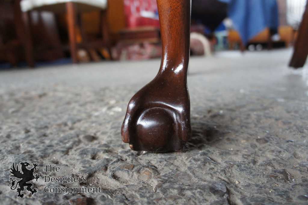 A gorgeous pair of early 20th century dining chairs from the Virginia Kettering Estate. Virginia was Dayton, Ohio's leading philanthropist and a patron of the arts. The chairs are made from a solid mahogany with a pierced splat and ball & claw feet. Upholstered in a sage green fabric.