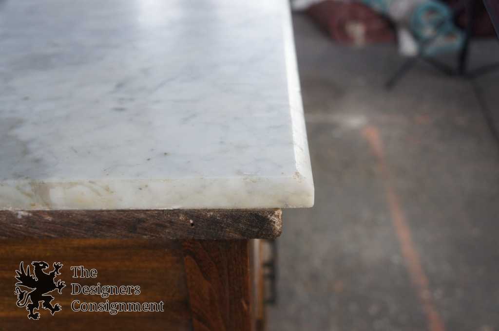 Good Antique – Marble was paired with the piece and cut down to fit. One edge is polished, other is flat. Hangs off the back slightly.