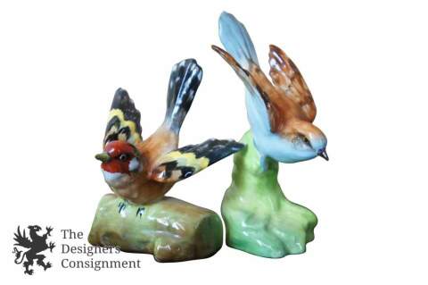 2 Vintage Crown Staffordshire Porcelain Bird Figurines Bone China England