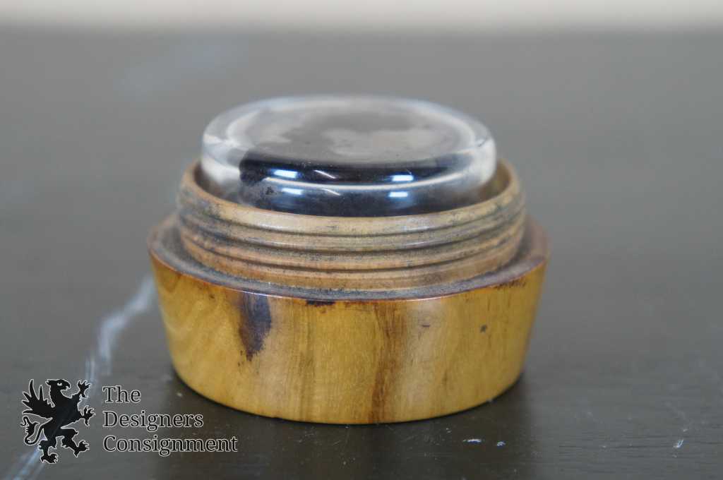 Antique Treenware Inkwell. Made from burl wood with glass insert and wooden screw top. The canister could be altered to be used as a snuff container as well.