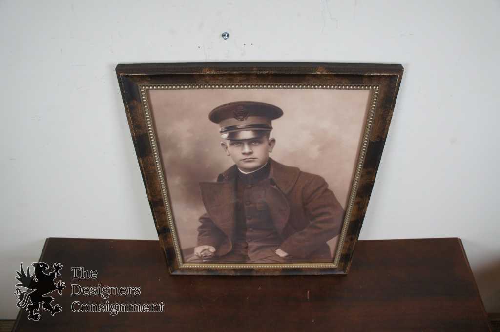WWI sepia military portait of a young soldier. Signed along the lower right 1918. First part of signature can not be made out, but second part says Baker. Neatly framed with glass.