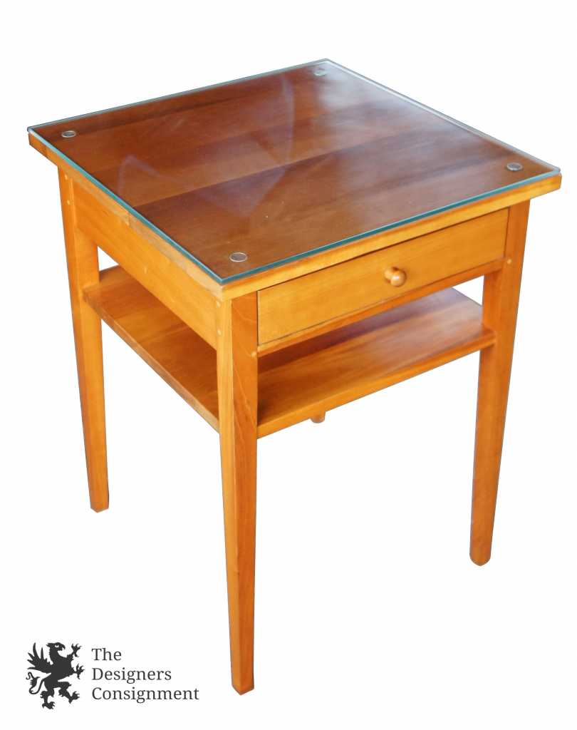 Early American Style Nightstand by Harden Furniture. Made from Cherry with dovetailed drawer and lower shelf. Includes Tempered Glass Top.