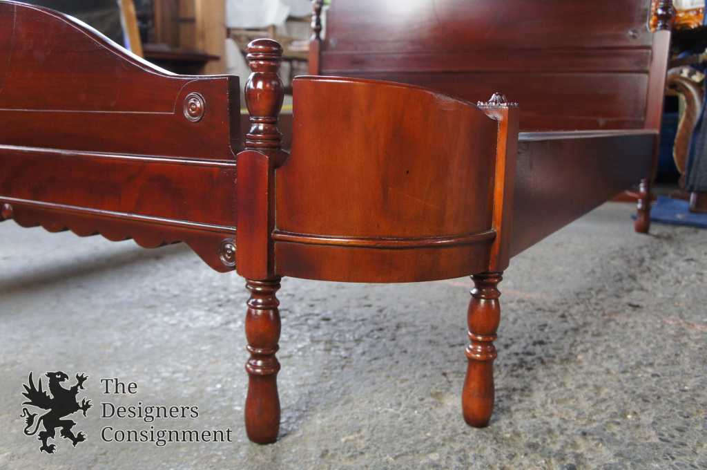 Knox-Hutchins Furniture Co. Walnut Bed, circa 1930s. Knox-Hutchins operated out of Paoli, Indiana. This beautiful bed is early american inspired with spindled posts and a wrap-around front. Matching Dresser & Vanity available separately.