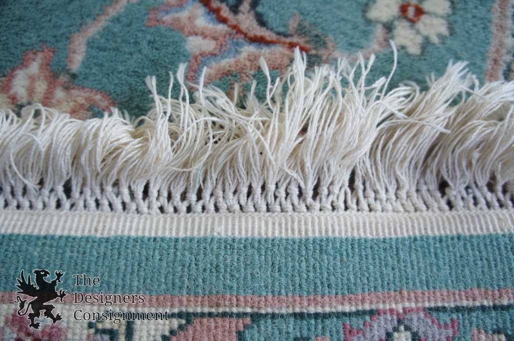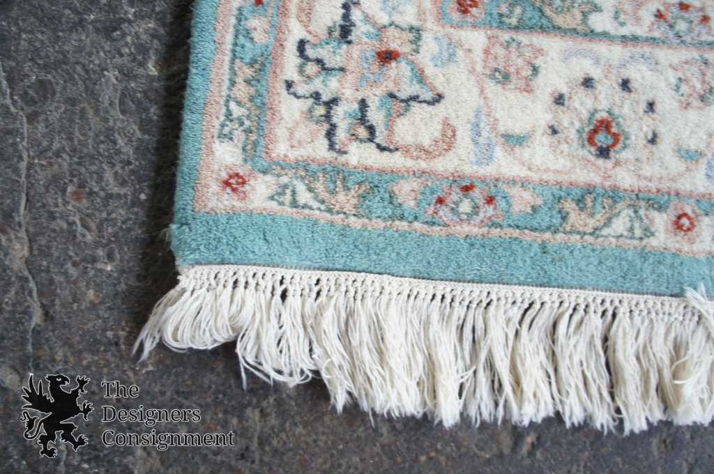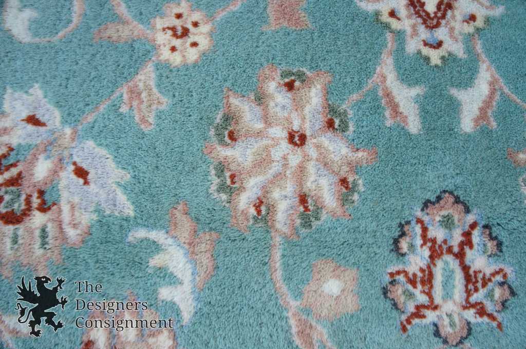 Kashan rugs are a type of Persian rug. They are one of the most expensive types of rug woven in Iran. This beautiful turquoise rug has a floral all over pattern. a vibrant addition to any space.