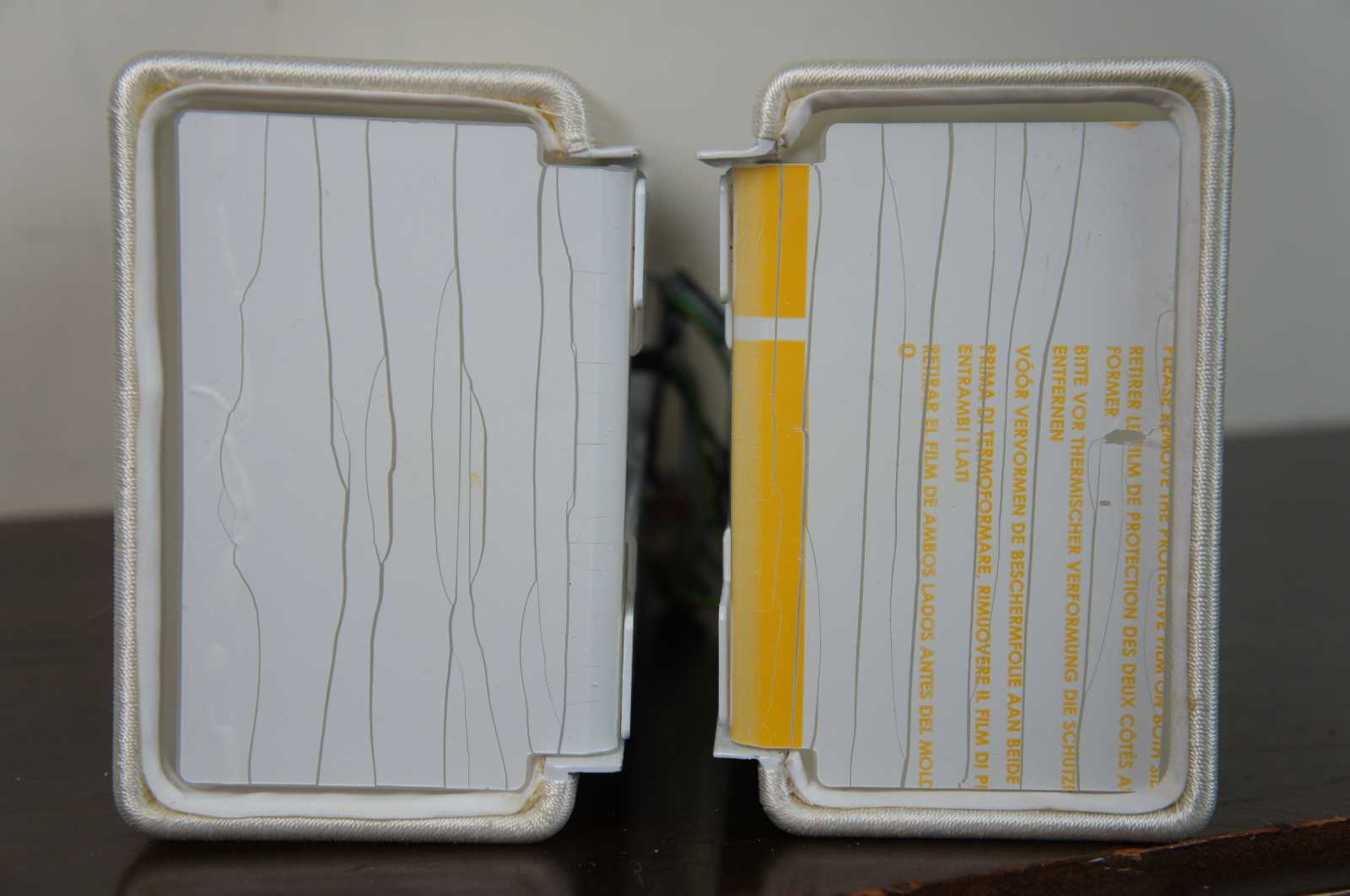 Chrome-plated frame and handmade silken thread lampshades. Ivory White
