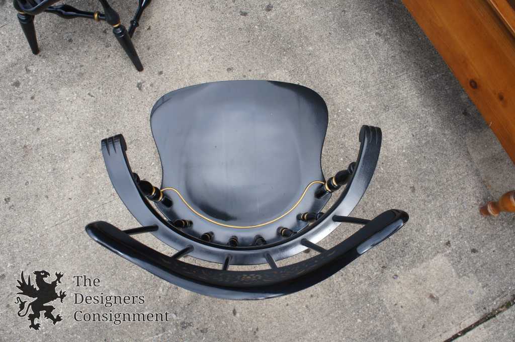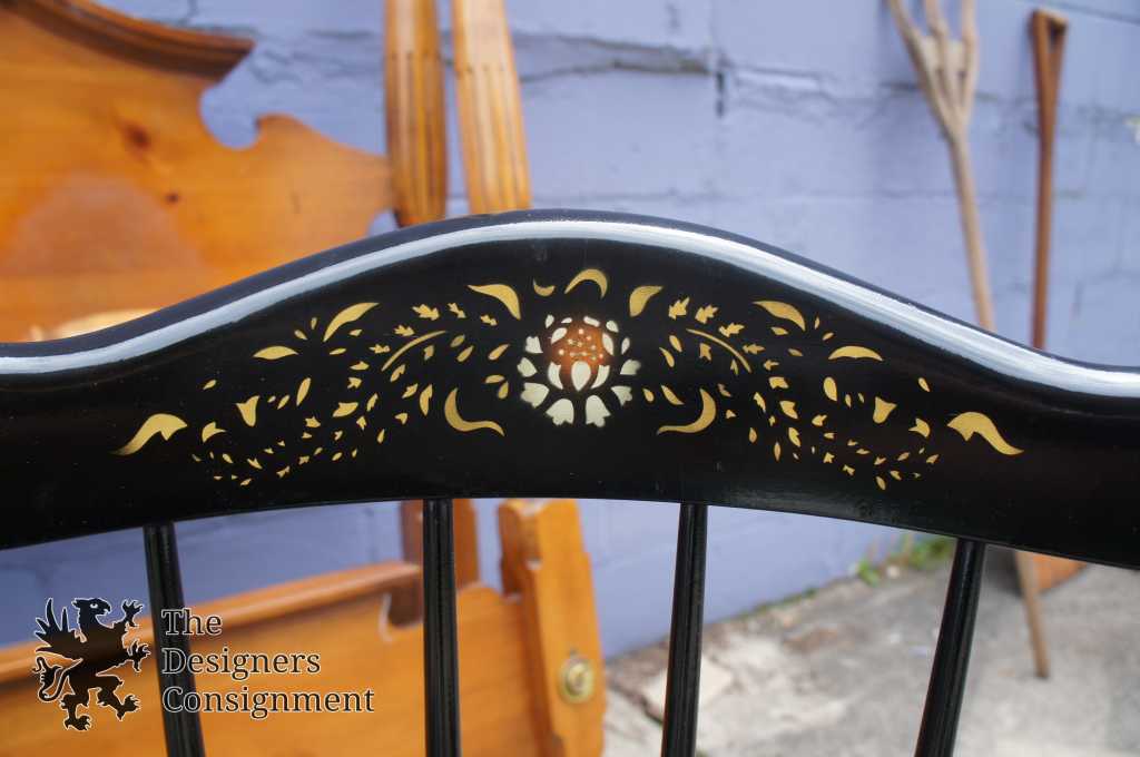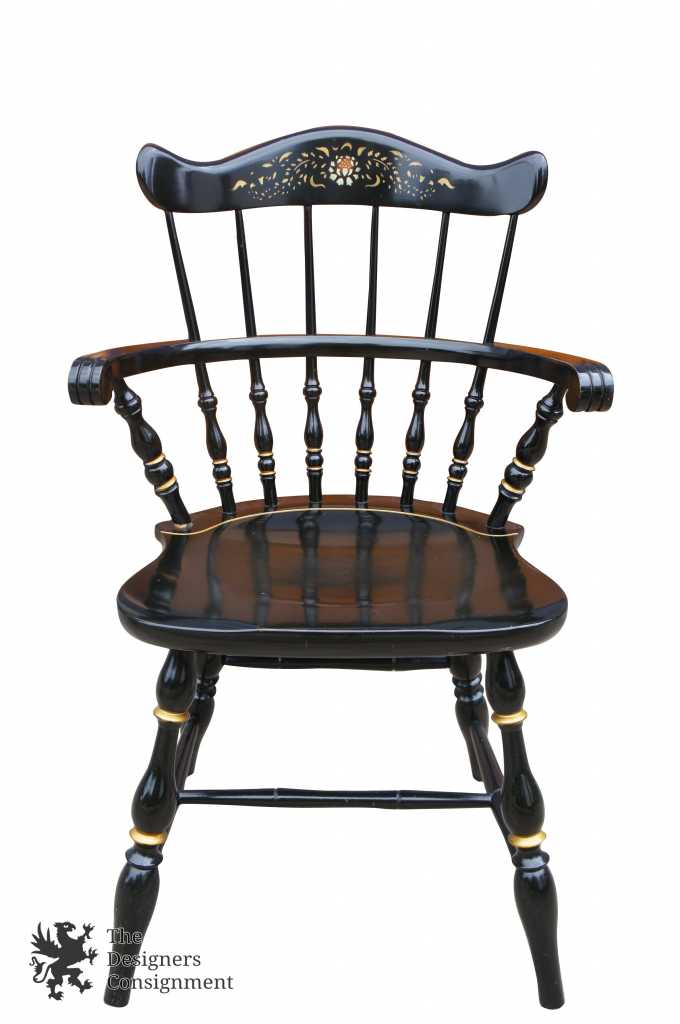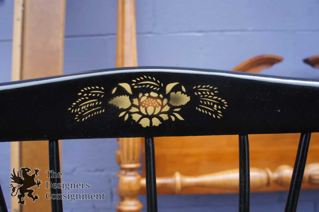 2 Nichols & Stone Co. harvest harvest stenciled Windsor chairs. Beautifully designed with a black finish trimmed in gold. A neat accent in any setting.