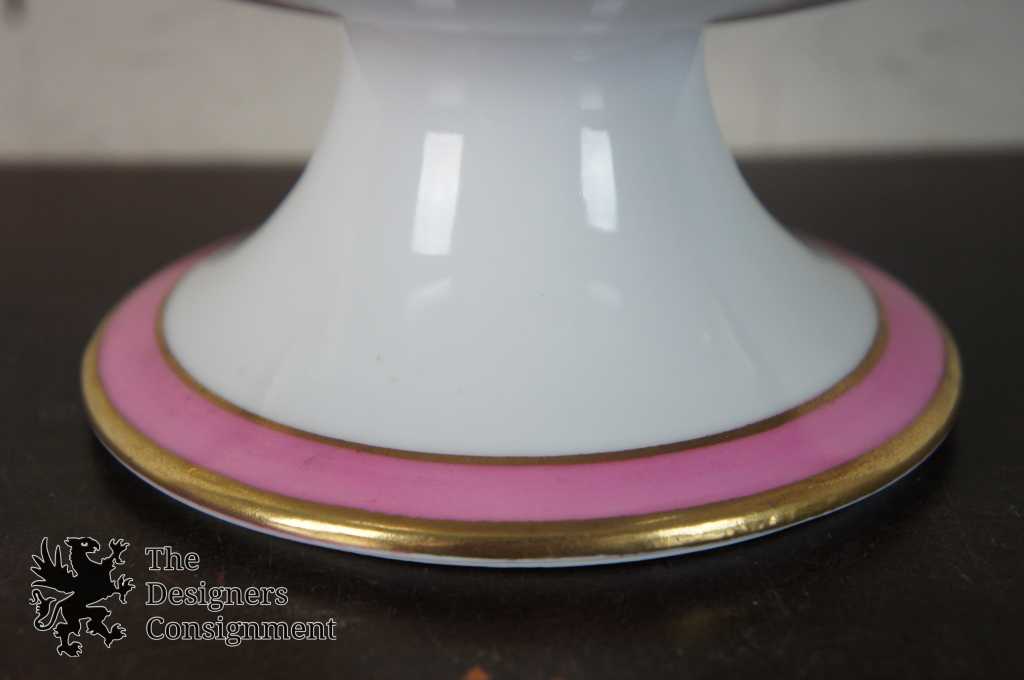 Noritake footed compote. Pink with floral design and beautifully painted gold interior. Marked in green along the bottom in the cherry blossom mark. This mark was used by Noritake from 1924-1935