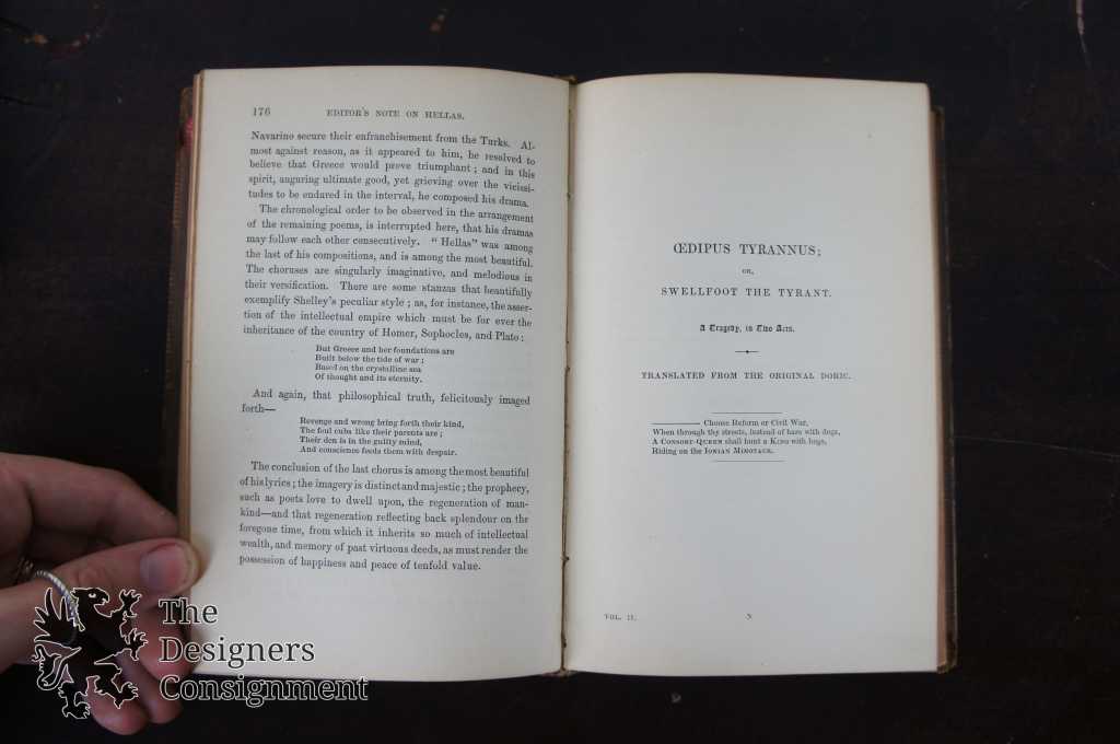 Description: The Poetical Works of Percy Bysshe Shelley in Three Volumes – Edited by Mrs. Mary Shelley – Bradbury & Evans, Printers, Whitefriars – Edward Moxon, Dover Street – 1846 – ISBN: N/A