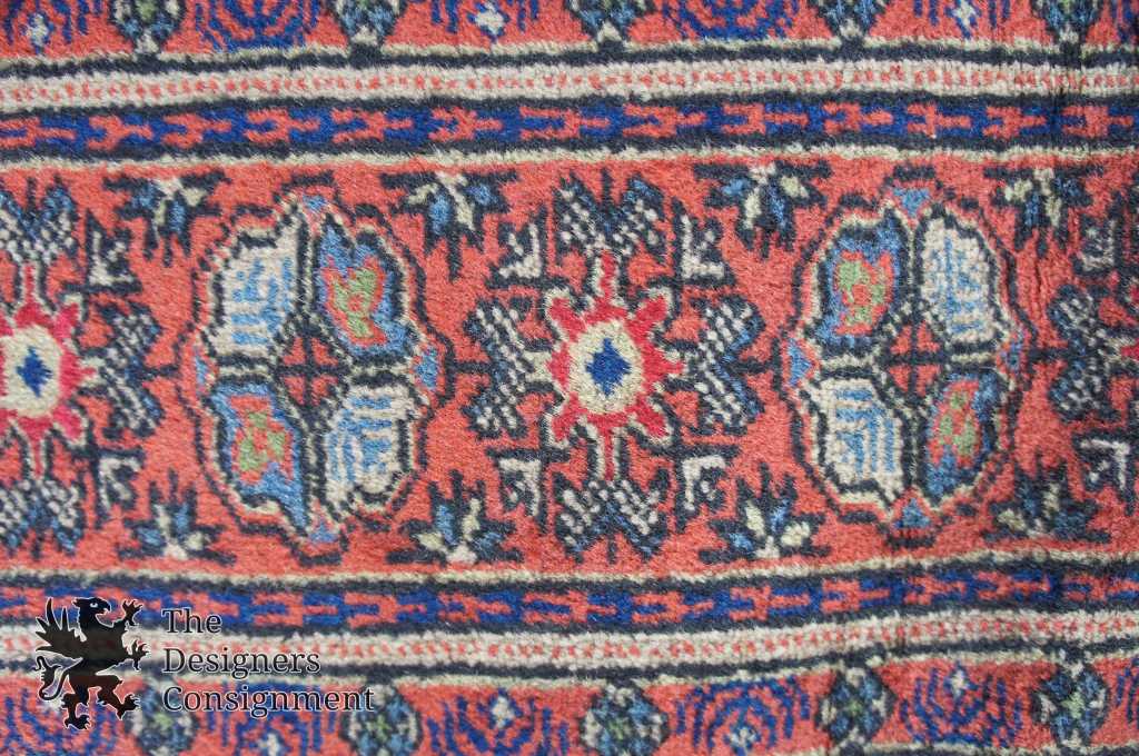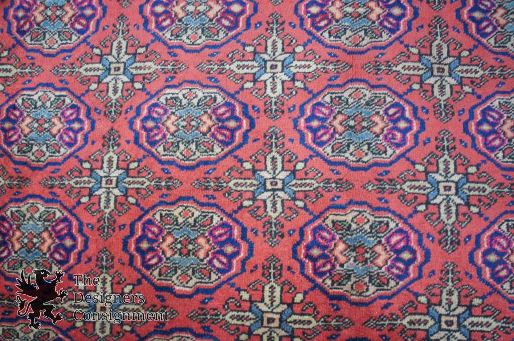 A Turkmen rug is a type of handmade floor-covering textile traditionally originating in Central Asia. Beautifully designed from 100% wool with geometric design. Blues & Oranges. A neat addition to any space.
