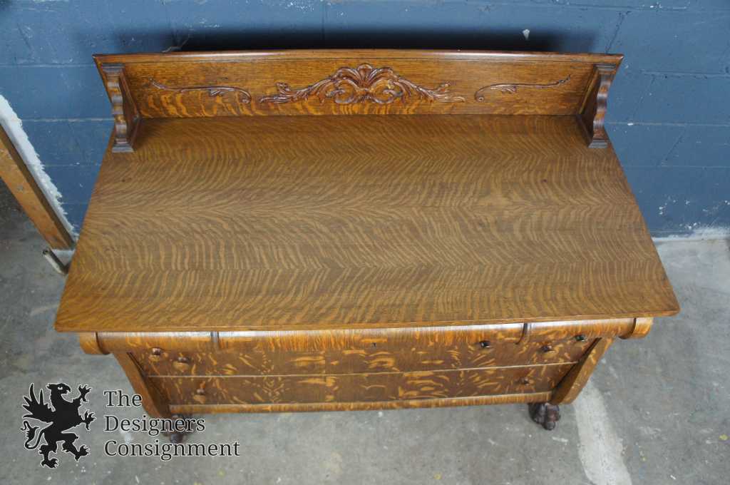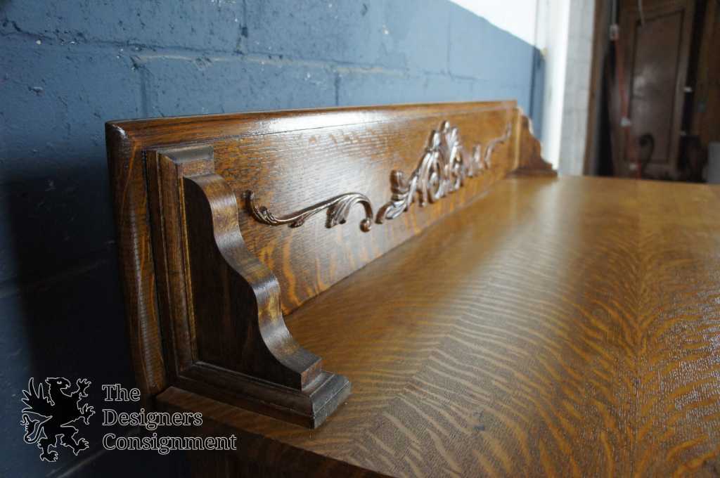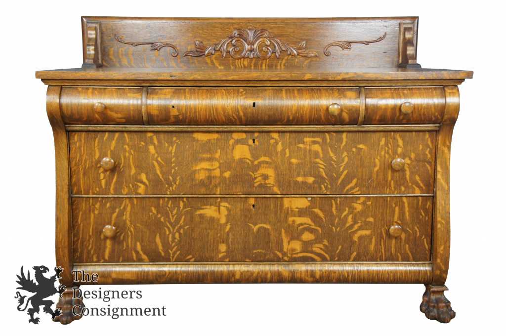 A stunning early 20th century Victorian buffet or dresser. Quartersawn oak with a beautifully curved front, paw feet and carved backsplash. With a large upper surface its the perfect addition to any bedroom or dining setting.