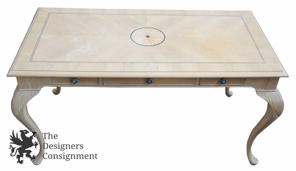 Bernhardt Neoclassical French Provincial Style Writing Desk Library Table Blanc