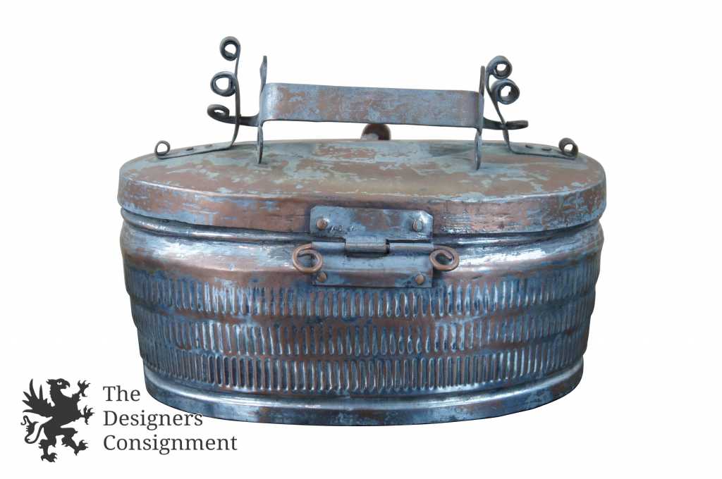 Antique Ornate Turkish Hammam Copper Bath Soap Box Hammered Lidded Container Locking 12