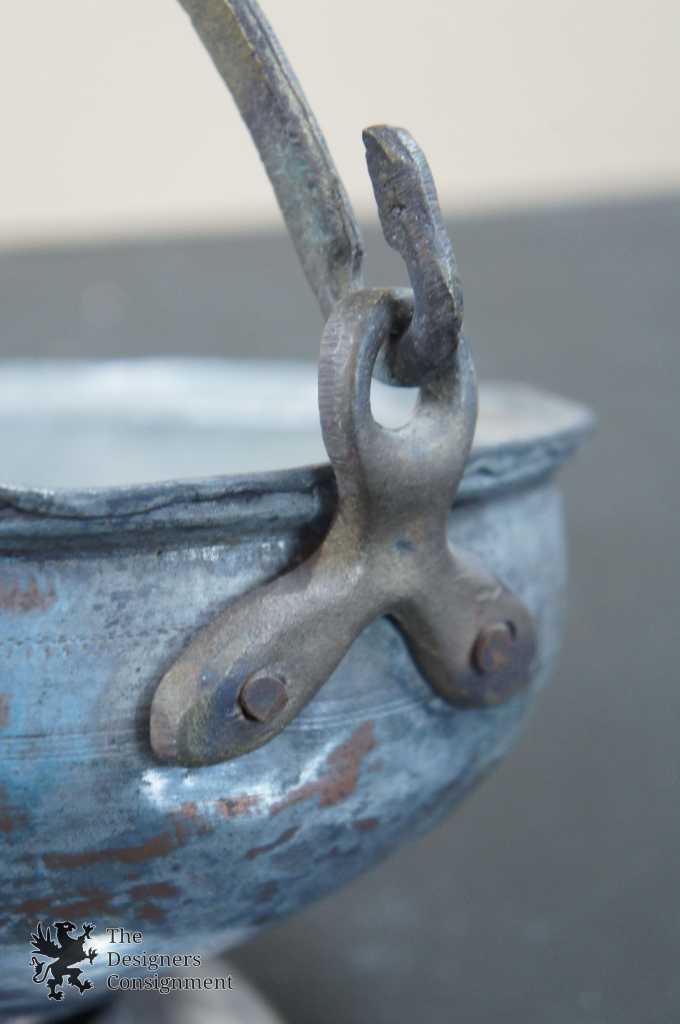 Antique Forged Copper Footed & Handled Cauldron