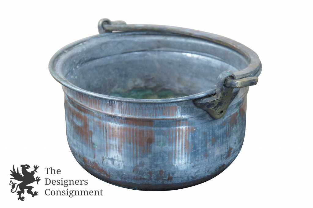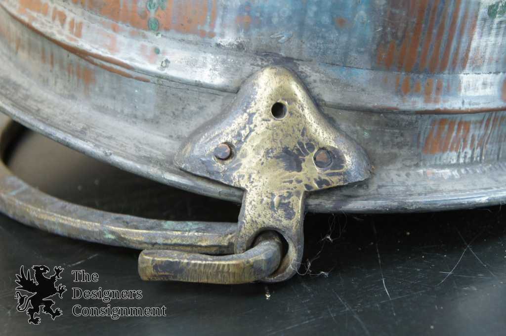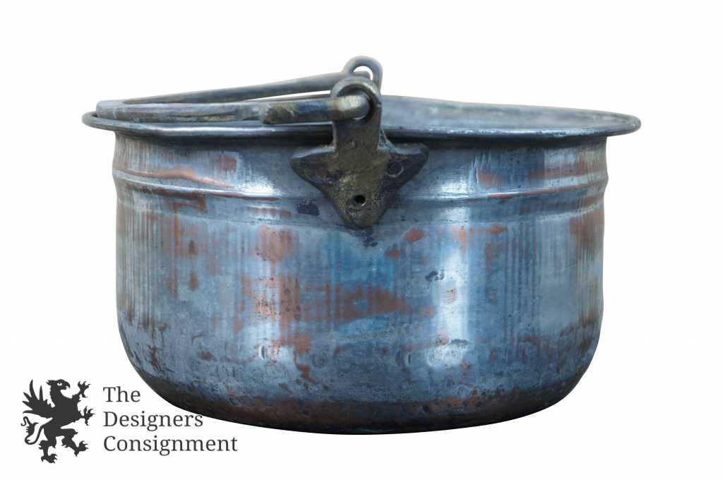 Antique Turkish Hammered Copper & Wrought Iron Cauldron